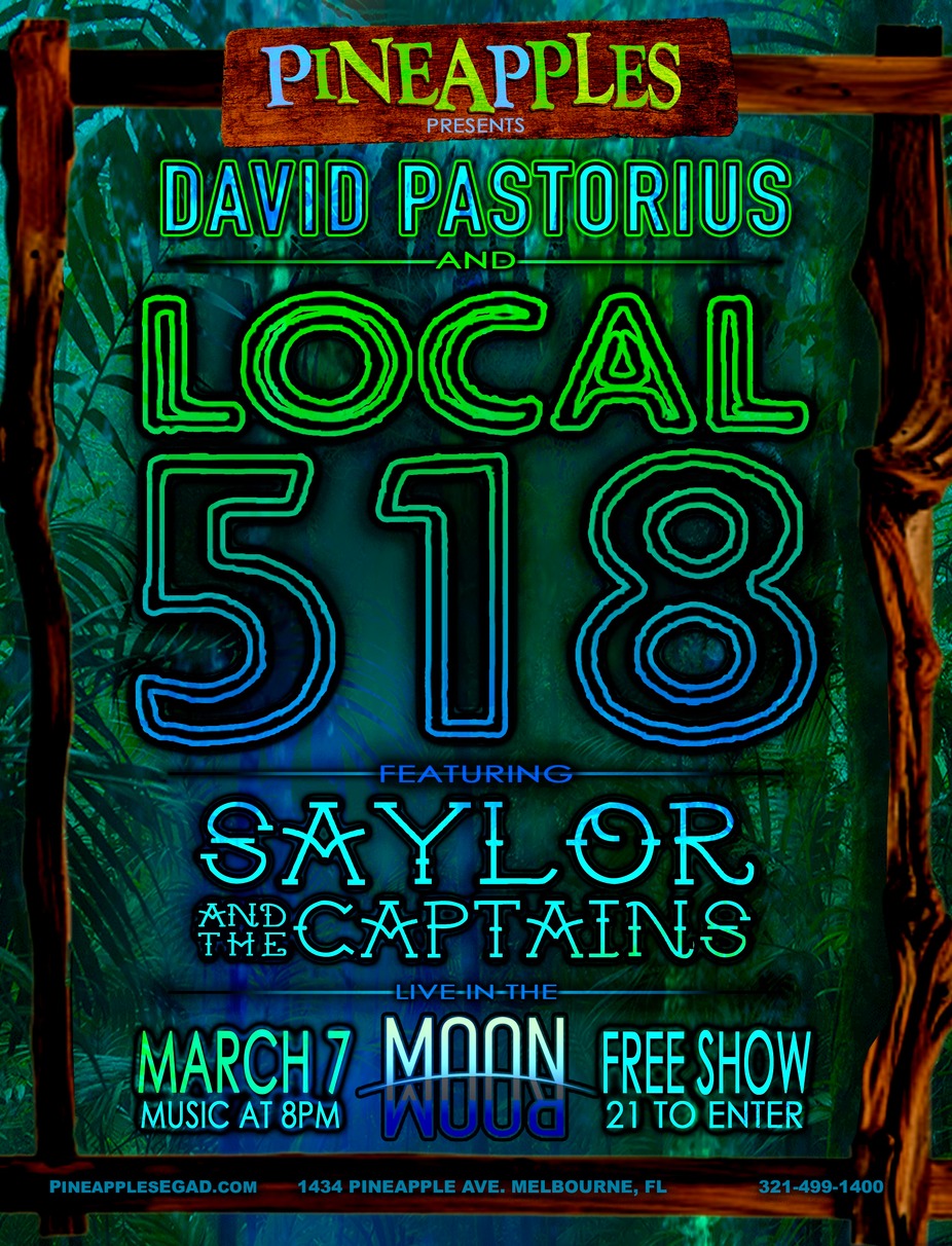 Mind-blowing progressive funk-rock trio Local 518 perform a FREE to enter show, with an opening set by the young talented band Saylor & The Captains!